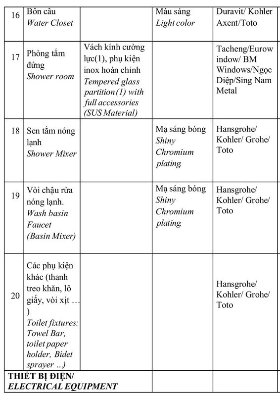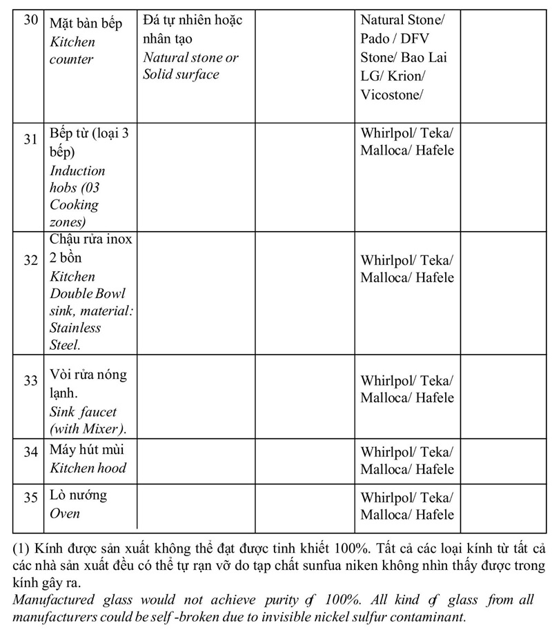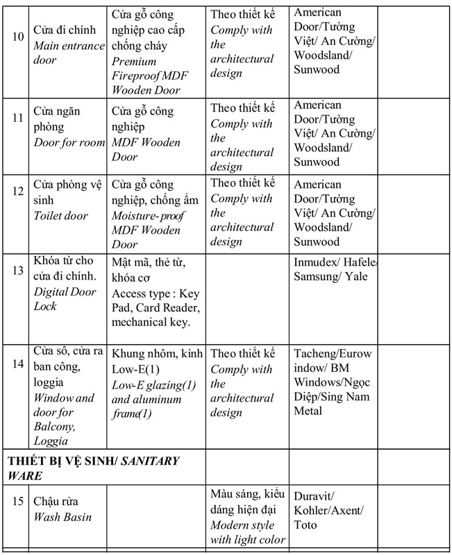 Danh mục bàn giao nội thất The Sunset S2 Masteri Grand Avenue Vinhomes Global Gate Cổ Loa. Chủ đầu tư Masterise mở bán đợt 1 chiết khấu 16%