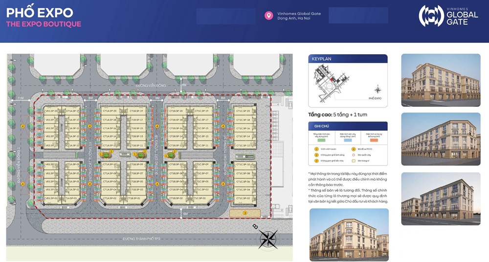 Các sản phẩm nhà phố thương mại (shophouse) tại đại dự án Vinhomes Global Gate (Cổ Loa, Đông Anh), đặc biệt là dòng sản phẩm được mệnh danh “Phố Expo” hay “The Expo Boutique”, đang là tâm điểm của thị trường bất động sản phía Bắc. Đây là dòng sản phẩm shophouse thương mại dịch vụ (TMDV) cao cấp, có vị trí chiến lược ngay tại cửa ngõ hoặc trên các trục đường chính dẫn vào Trung tâm Hội chợ Triển lãm Quốc gia (The Grand Expo), hứa hẹn tiềm năng kinh doanh vượt trội.
