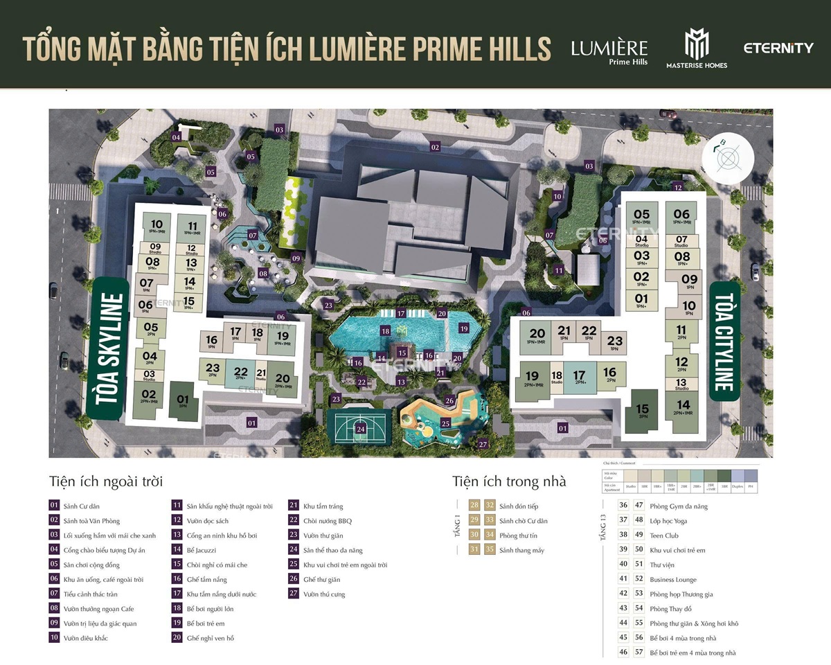 Hiện tại, thông tin chi tiết về “Tòa Cityline” cụ thể trong Lumière Prime Hills chưa được công bố rộng rãi như một tên tòa tháp chính thức. Thay vào đó, dự án này được biết đến với 2 tòa tháp căn hộ chính (trong đó có Skyline Tower – Tòa B1 đã chính thức ra mắt và mở bán) và 1 tòa tháp văn phòng. Tuy nhiên, các thông tin dưới đây tổng hợp về Lumière Prime Hills nói chung sẽ giúp bạn hình dung chi tiết về căn hộ tại đây: