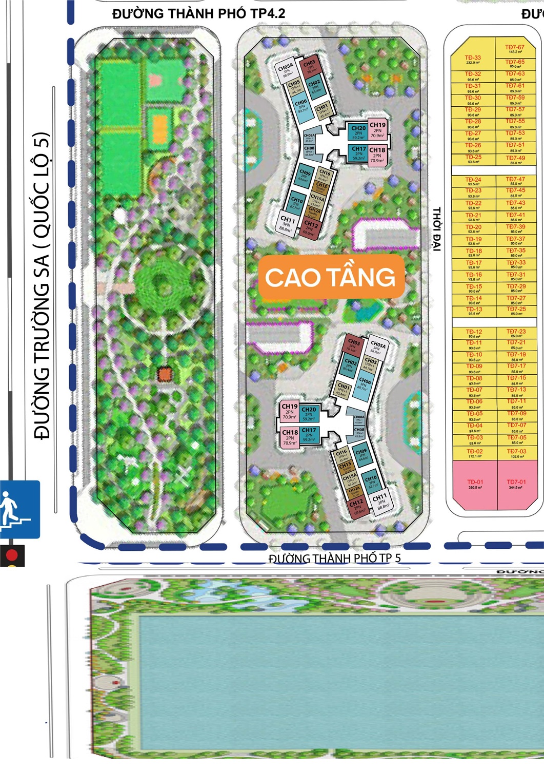 Vị trí Toà A5 sở hữu tầm view 3 hướng Hồ Đẹp + Trung Tâm + khoảng không Công viên trước mặt đường Trường Sa