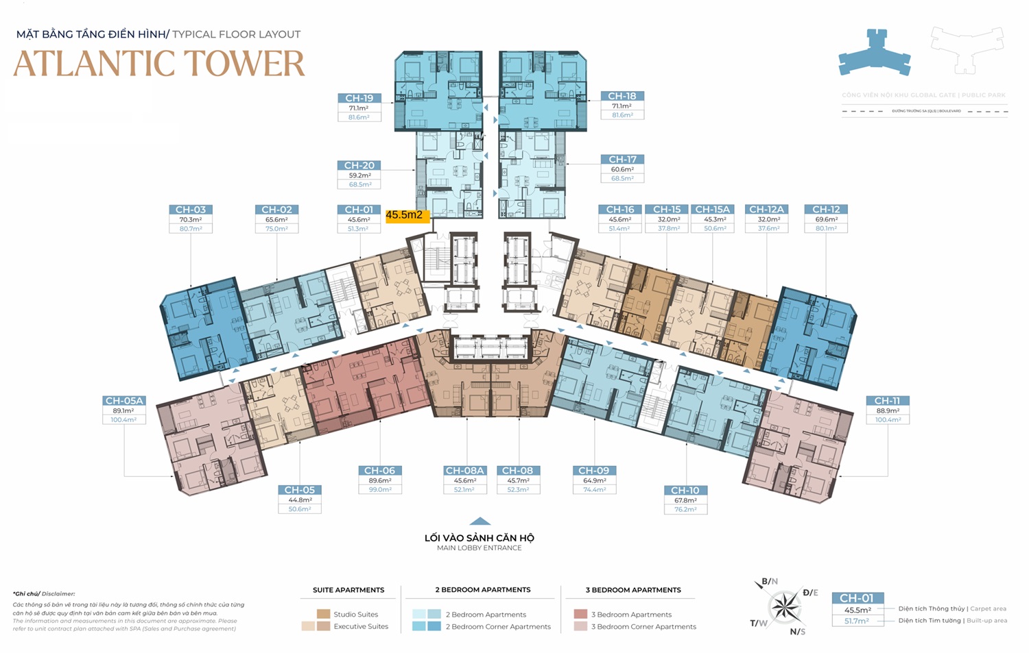 Mặt bằng Tòa Y4 Atlantic Tower – The Continental Imperia Signature Vinhomes Global Gate Cổ Loa